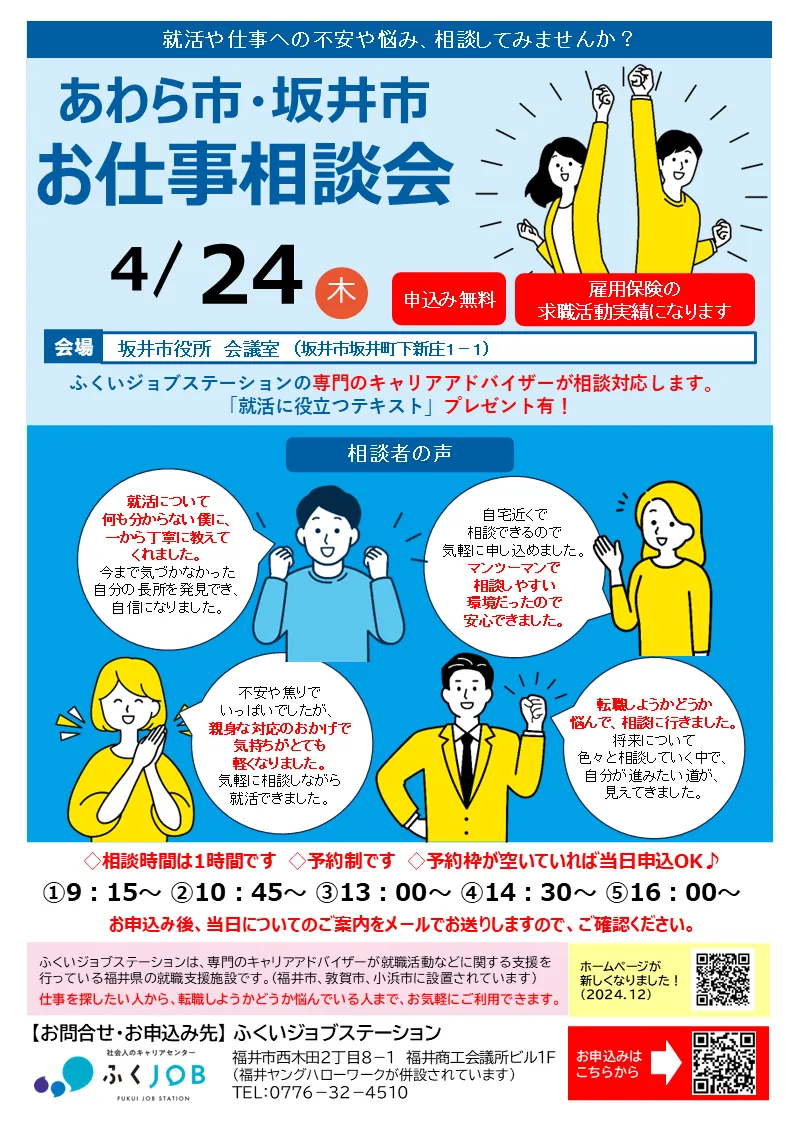 ふくいジョブステーションの専門のキャリアアドバイザーが相談対応します。