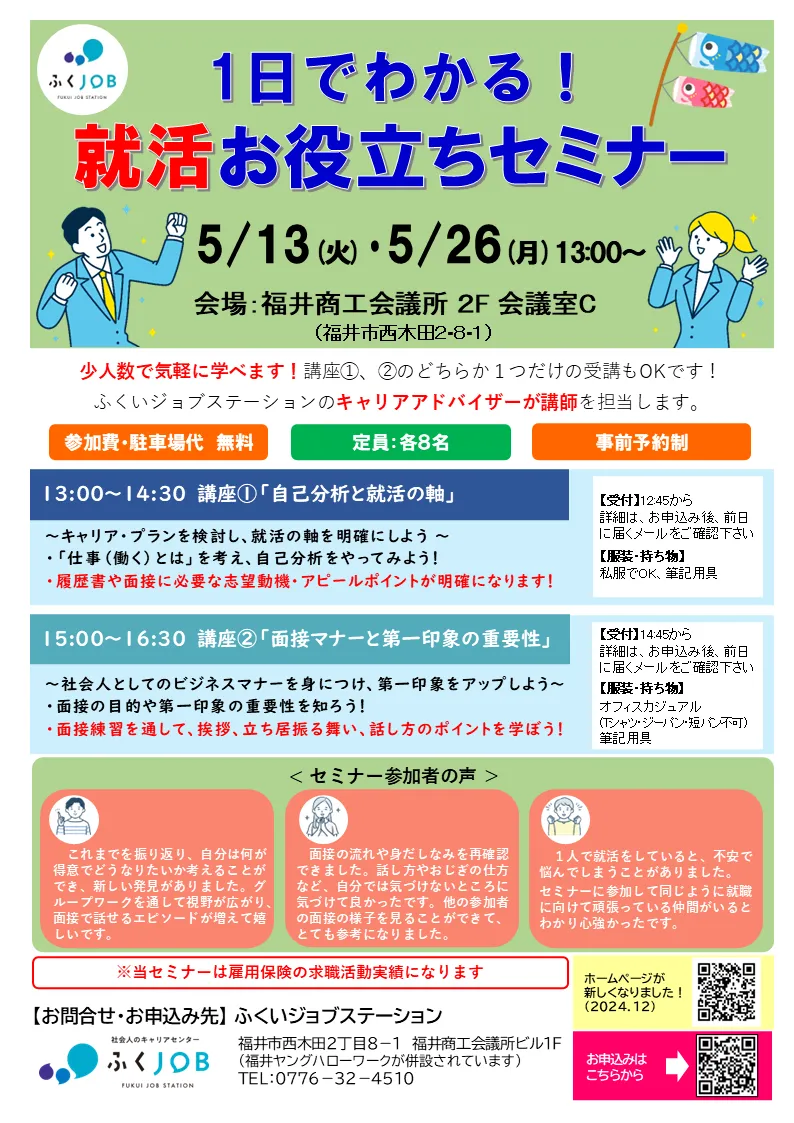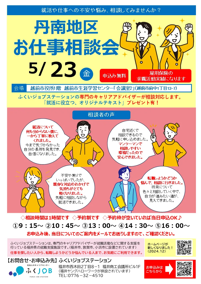 坂井市、あわら市にてお仕事相談会を開催します。