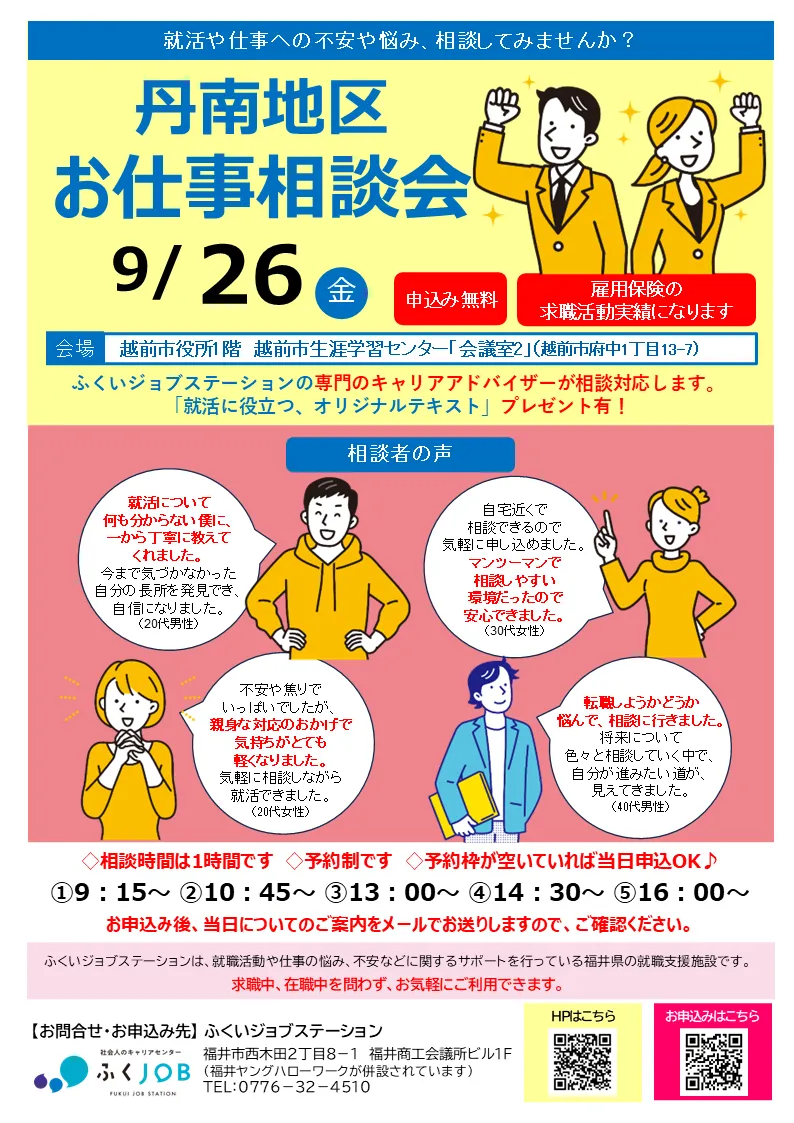 越前市にてお仕事相談会を開催します。